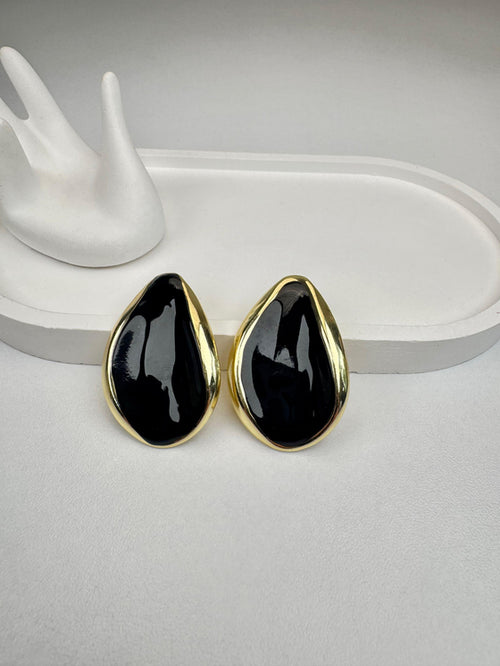 Özel Seri Siyah Üçgen Tasarım Gold Küpe -