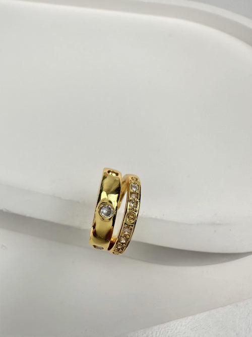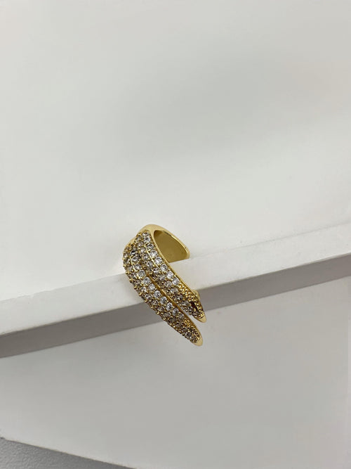 İkili Şerit Taşlı Kıkırdak Gold Küpe