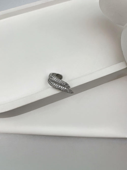 İkili Şerit Taşlı Kıkırdak Gümüş Küpe